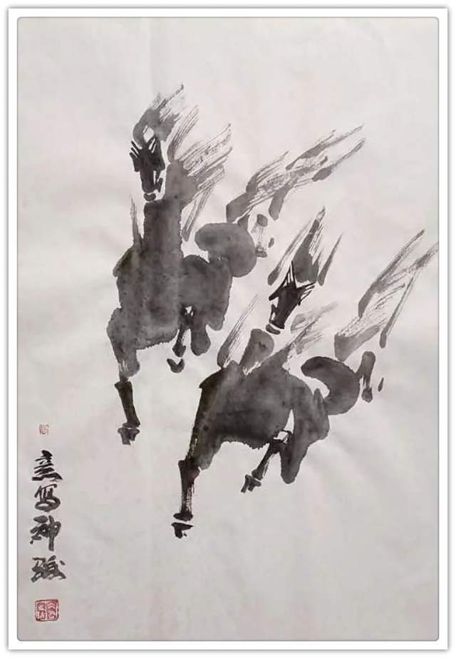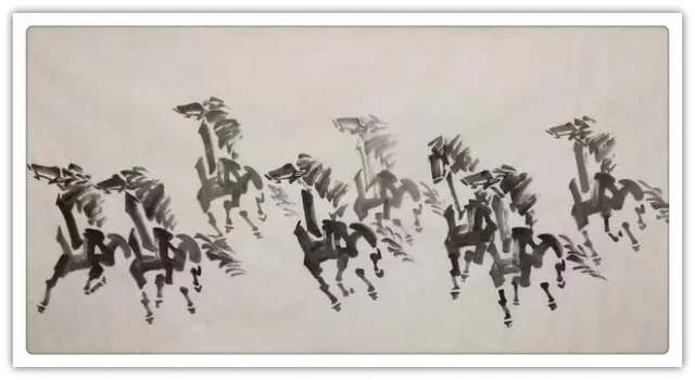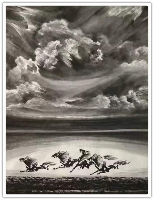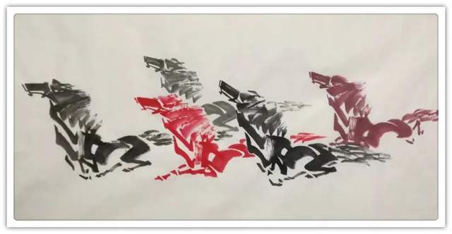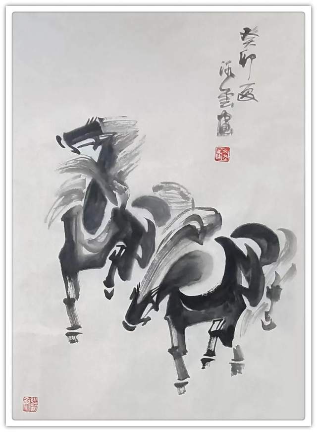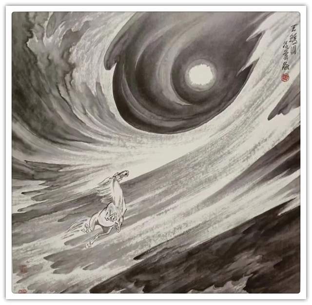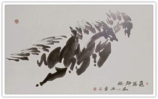 画马远有李公麟、后有徐悲鸿、今天有冰云。三代画马大家前后谱写了画马的龙脉相续;李氏画马工笔是也、徐氏画马写意是也、何氏冰云画马抽象是也!这正是水墨丹青艺术从形象到符号的发展进化历程。冰云先生凭借多能的艺术才华以及借古开今的创新精神,方可以把马画成能够磅礴于乾坤的一曲神歌!著名艺评家胡月。