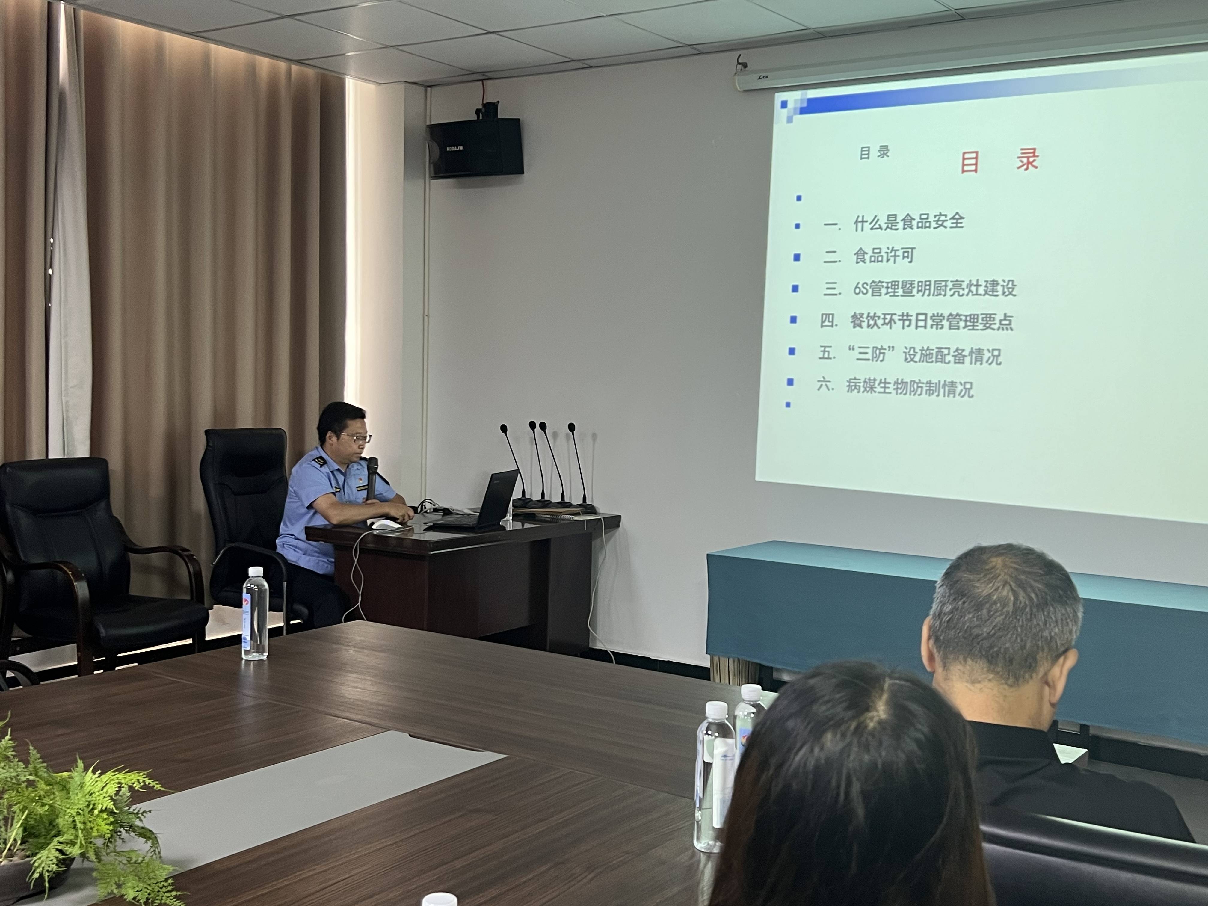 培训会上,县市场监管局副局长段建涛结合校园食品安全实际,主要从许可与信息公示、食品安全管理、人员健康管理、场所设施设备、原料控制、加工制作、清洗消毒、反对餐饮浪费以及“互联网+明厨亮灶”等方面进行了深入浅出的讲解,重点强调要严格落实食品安全主体责任,从源头把控好食品质量关,坚决防止发生食品安全事故;要求从业人员要加强岗位技能学习,强化责任意识,坚持底线思维,规范食品加工操作行为。所有参训人员听得仔细、学得认真,讲解人员与参训人员积极互动,现场学习气氛十分浓厚,取得了良好效果。