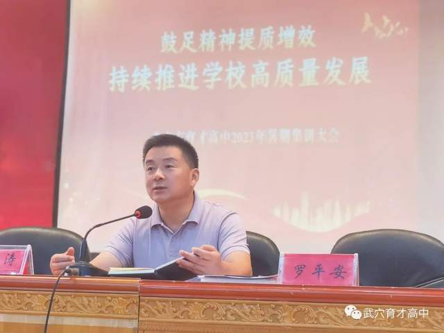明师德,铸师魂,扬师风,提师能!武武共建同筑梦,奋楫笃行启新程。为认真落实中央、省委、市委决策部署和工作要求,落实市委组织部、市教育局新时代党建引领武穴融合型教连体建设暨教育高质量发展专题培训班会议精神和要求,持续推进学校高质量发展,凝心聚力启航新征程。8月25日,武穴市育才高中于五楼报告厅召开2023年暑期集训大会暨秋季学期开学工作会,并进行教师培训一线测试。8月26日,学校特邀武汉市新洲区一中常务副校长陶洪涛、湖北省高考状元方立航班主任朱志刚来校进行经验交流。