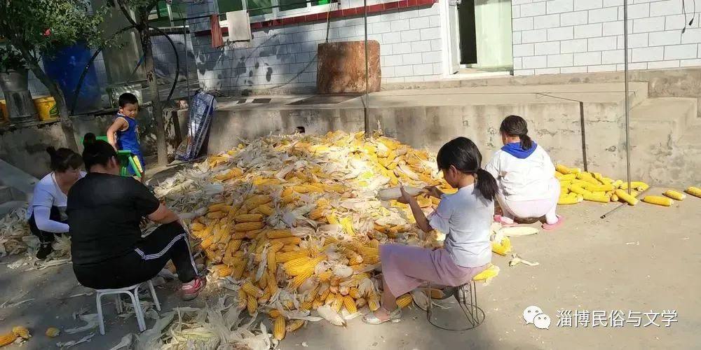 俗话说:“三秋不如一夏忙,三夏不如一秋长。”到秋收时节,妈妈又要去三生产小队场院里剥玉米了。还是天不亮就出发,拿个交叉和蒲团匆匆赶到场院。不过,这次是我和妈妈一块去的,没想到我们还是第一个到呢。满满一场院玉米,我们围玉米堆而坐。选好位置,妈妈坐蒲团,我坐交叉,开始剥玉米。规矩一、最好先剥大的,小的往中间扔。最后大的剥完了,再剥小的。小的大家再平分剥,直到全部剥完为止。规矩二、不管大小都要剥,靠运气,不准往中间扔。一般采取第二种规矩剥。上午剥,下午编。即把带玉米皮(衣)编起来。不一会儿,大家陆续赶来场院,开始争先恐后地剥玉米了。右手抓起一个大玉米,往地下使劲一磕,左手一掰,再像剥洋葱一样,一层一层剥玉米“外衣”,留三、四片玉米皮,便于编玉米辫子。两片容易断,去掉,成“光腚”。剥好一个放在我俩中间,玉米朝外,玉米皮朝内,慢慢地,黄灿灿的玉米排成一大堆(垛),遇到小的,直接剥成“光腚”,放在自己跟前。我们小孩子子坐不住,一会儿坐小交叉,一会儿坐在玉米堆上,剥完一个,扔给妈妈。不一会儿,清理一下跟前剥下的了许多玉米皮。站起身抱起玉米皮往一边玉米皮堆上放。往复无数次。就这样,从早上到中午,忙忙碌碌一上午,一长溜黄灿灿的玉米静静地卧在那里,很是喜人,也很炫目!回家吃午饭。下午继续干。