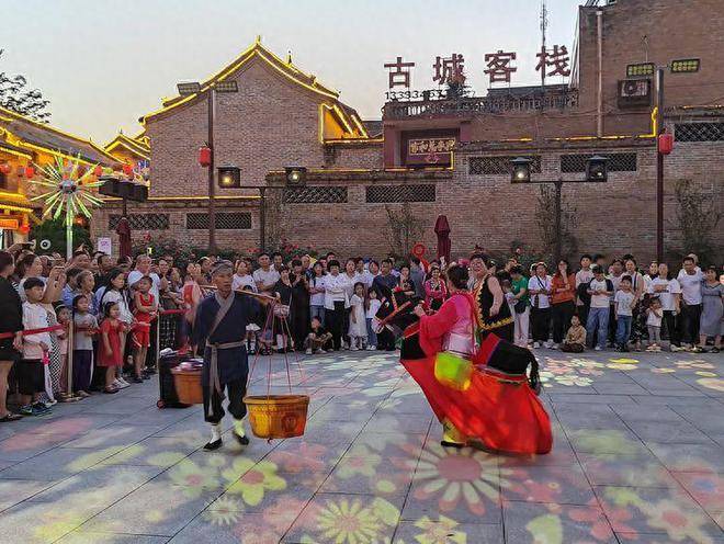 现在郭峪古城是旅游旺季,正是晋城“太行文化旅游月”活动期间,游客云集,人气爆棚,每到傍晚,各种文艺节目演出异彩纷呈。大型节目开门迎宾大鼓《鼔舞神韵》,气势恢宏,震撼人心;《抛绣球招婿》更是热闹风趣,游客与演员同台演绎招来阵阵热烈掌声;民俗舞《回娘家》《逛古城》,小品《申明亭断案》更是惟妙惟肖,贴近生活,富有教育意义。民间综艺大荟萃中的《三轮高车技》,《快乐厨师转盘子》,《小狗表演》等节目更是得到孩子的欢迎。最后,《景区灯光秀》,《豫楼3D光影秀》把节目推向高潮。