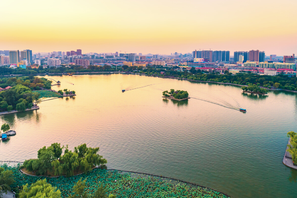 湖光浩渺里,垂柳扶风,山色遥连。铁公祠、小沧浪、汇泉寺、历下亭、稼轩祠、北极阁......这些大自然的柔美风光和历史文化交融在一起,越发彰显了济南这片水土的厚重。好吧,就漫步在湖边柳下吧,看赏心悦目的风光,或者遥想从前。想铁公的悲壮,想曾巩的勤勉,李白的吟哦,苏东坡的悠然。那是什么呢,在湖心妖娆?是张养浩的小令散落堆积成的词章吗?是蒲松龄的神笔幻化出的仙岛吗?“海右此亭古,济南名士多”。这湖心亭该是千百万的脚印叠成的吧?风景雅俗共赏,泉源日夜流淌。阳春白雪也好,下里巴人也罢,对于美,天生都是爱的。“杨柳春风万方极乐,芙蕖秋月一片大明”。