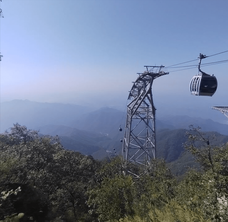 坐上景区小交通,20分钟左右来到景区换乘处,通往山顶有两条路线,一是坐缆车直线上行20分钟到达,二是走上山步道,估计需要2个半至3个小时,考虑到体力难支,和同伴商量决定坐缆车上山,走步道下山,这样能把景区所有看点“一网打尽”。