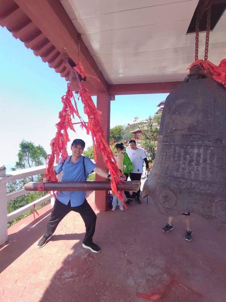 移步易景,曲径通幽,不觉来到钟楼,钟楼矗立在一处小山顶上,四周空旷,钟声响彻山峦,起伏回荡,音彻天穹。撞钟祈福,佑护平安,岂能错过良机。