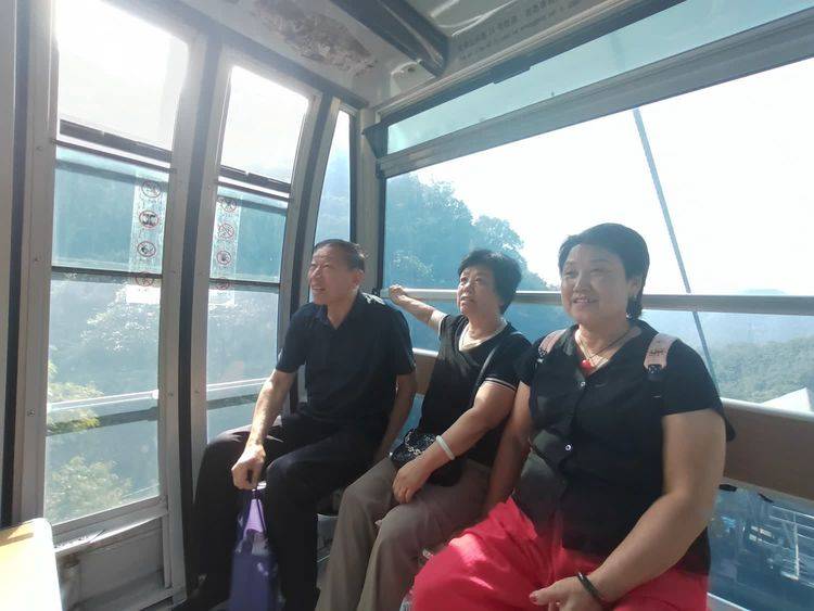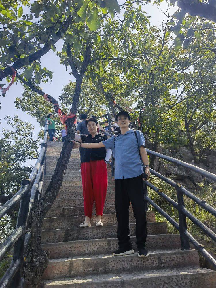 愉快时光阴总是短暂的,不觉中太阳偏西,带着余兴,留下些许遗憾和妻子及嫂友分道,她们还是坐缆车回程,我和挚友一道步行下山,选择步行下山,一则能欣赏沿途风光,观看半道小景点,二则自测体力看是否能走完这3500米数以万计的台阶步道。