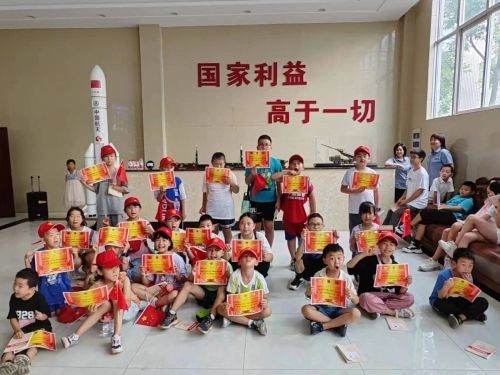 在河南国荣党支部航天制造基地的航天知识科普课堂上,河南国荣党支部的工作人员以“航天国防教育”为主题,向孩子们讲解了国防教育的重要性,随后通过课件、视频、模型向孩子们展示了中国航天的实力以及部分导弹的类型。孩子们津津有味地听着讲解,在提问环节更是积极互动回答问题,课堂气氛十分活跃。