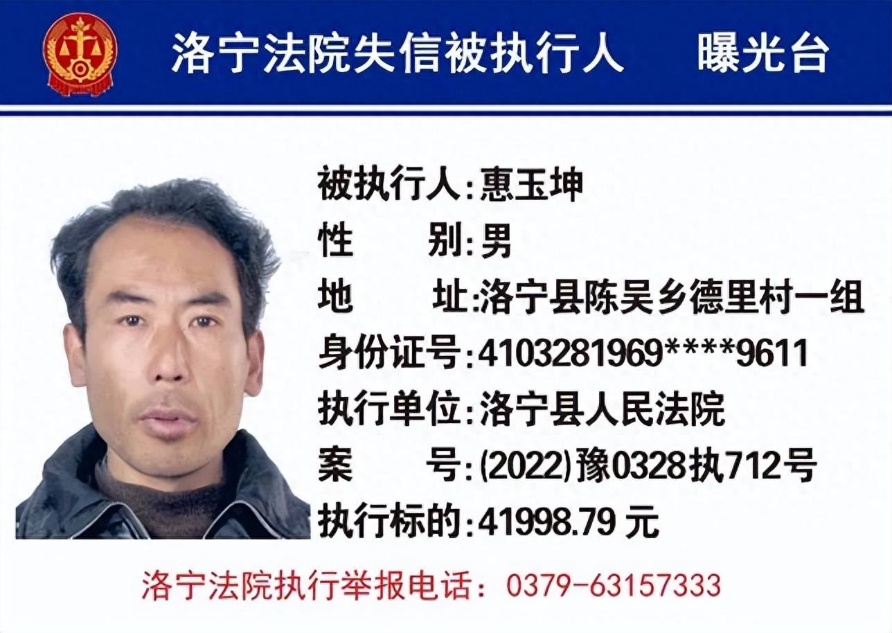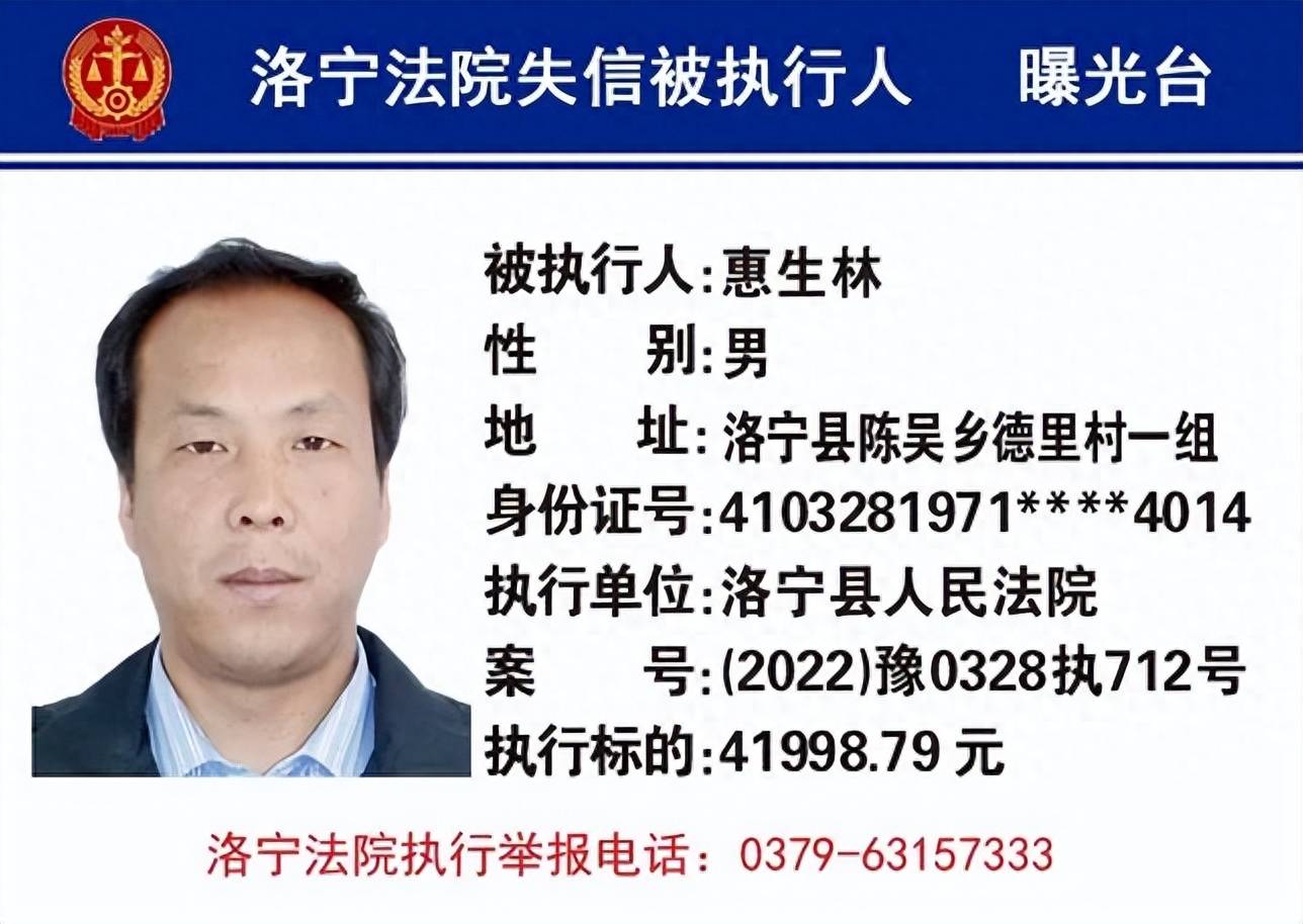 洛宁县人民法院9月份失信被执行人名单曝光