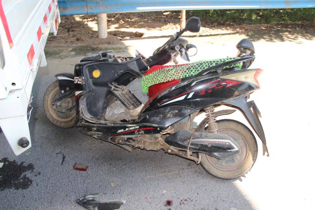2023年8月30日12时40分许,交警大队接到报警称:一辆二轮电动车在洛宁县赵村镇方村路段撞到停放在路边的车辆上。接到报警后,民警立即赶往事发现场。到达后,电动车驾驶人已被”120“接走,电动车受损严重,旁边还有一滩血迹。