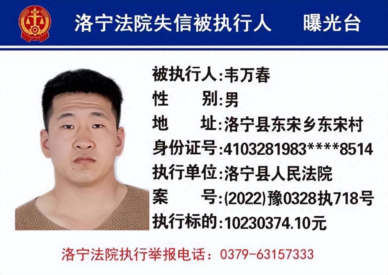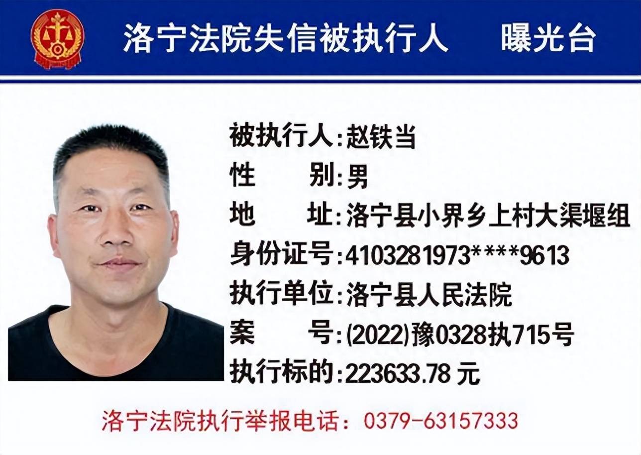 洛宁县人民法院曝光9月份第二批17名失信被执行人名单!