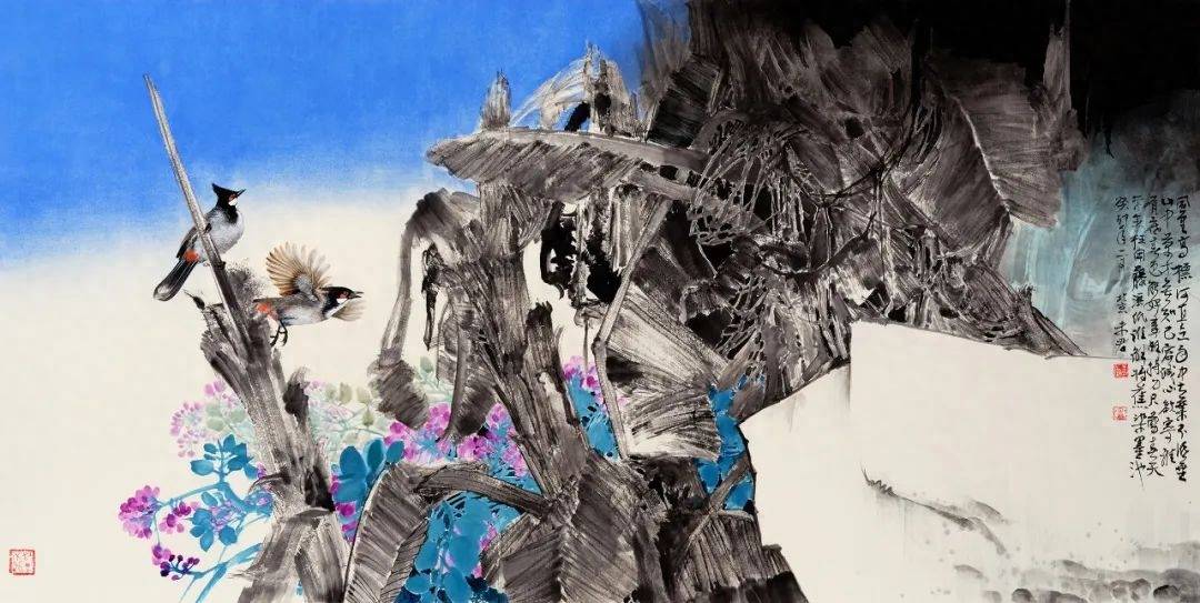 未君老树新枝68cm×138cm纸本重彩 2014年