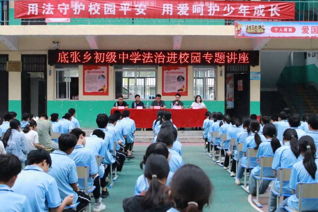 洛宁法院党组成员、副院长金利兵、大原法庭庭长刘胜贤及法庭干警,走进底张乡初级中学。