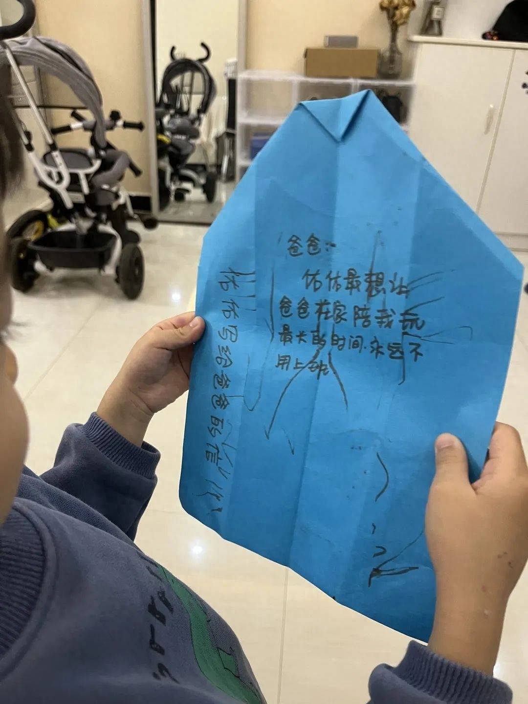 爸爸:佑佑最想让爸爸在家陪我玩,永远不用上班。
