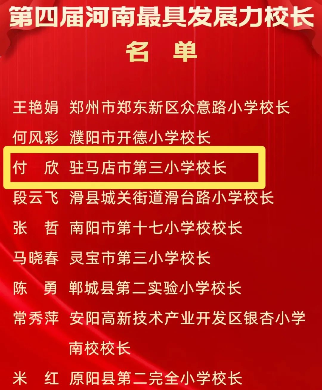 同时,恭喜我校校长付欣被授予第四届“河南最具发展力校长”荣誉称号!