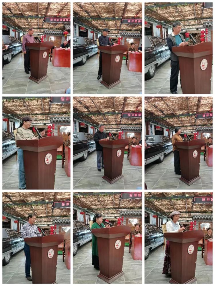 然后,各级领导依次讲话致贺并提出要求,又随后,各位诗友纷纷登台献贺诗并进行诗词吟诵,此后全体合影留念。