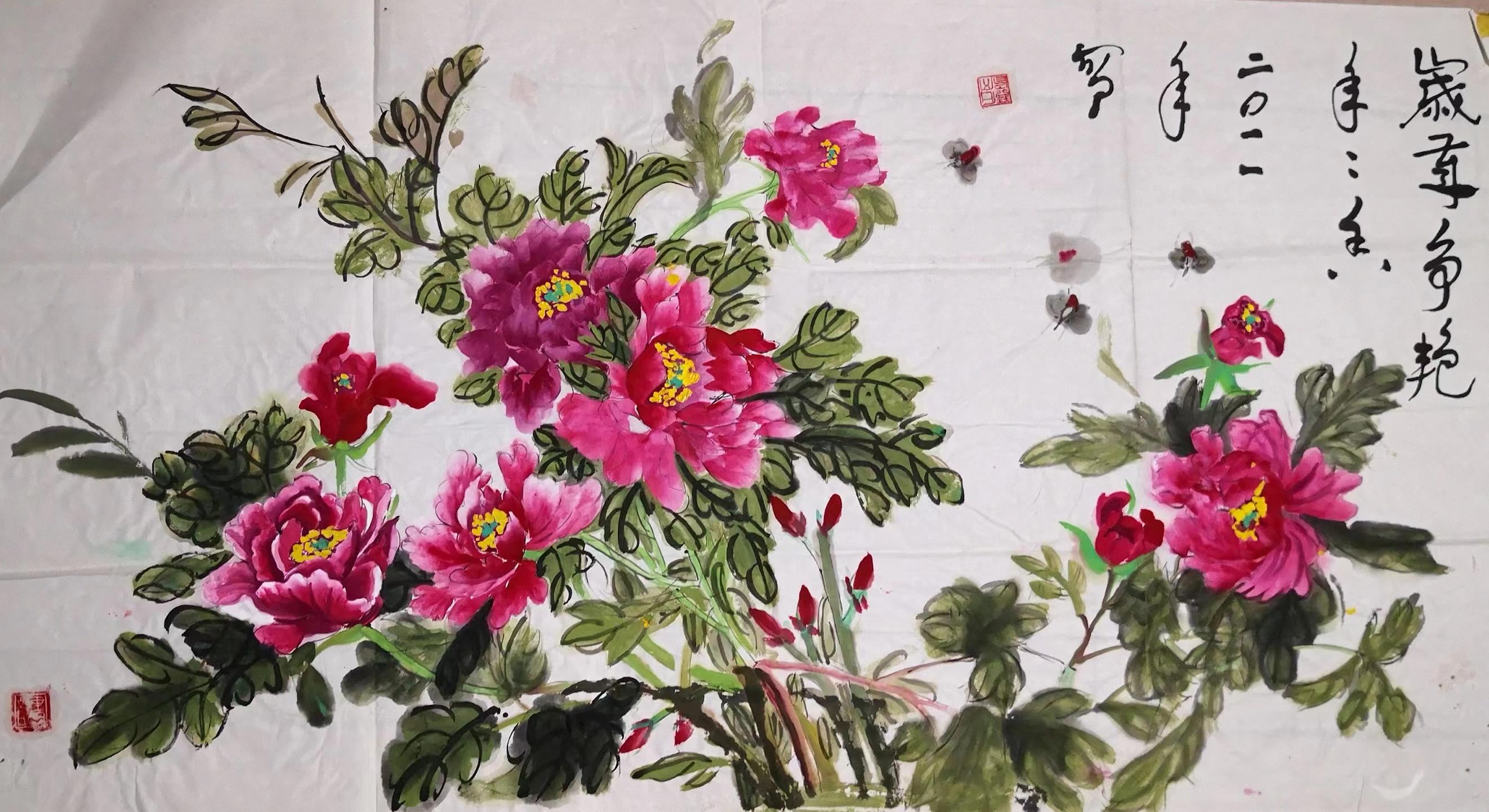作品曾获国评奖,花香鲜艳四季红。