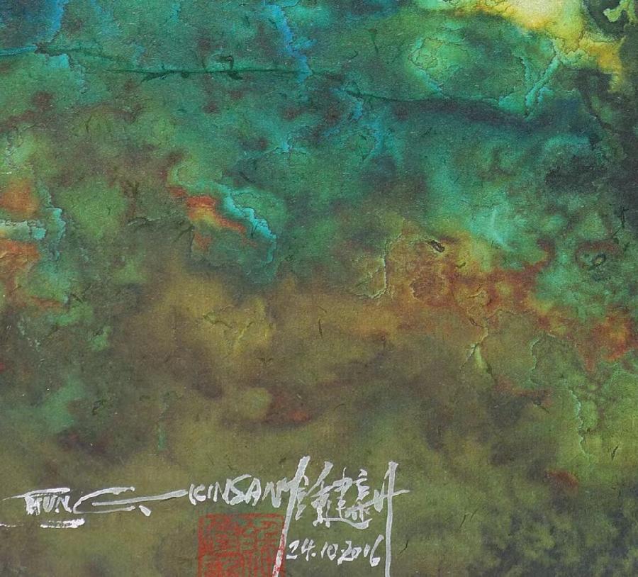 展示了如文學大師朱自清那樣的真摯。鍾建新教授有他獨特魅力和創作風格。它不僅展現了中國潑墨畫的獨特之處,同時也將觀者带入一個充滿詩意和靈性的境界,成為不朽的藝術瑰寶。