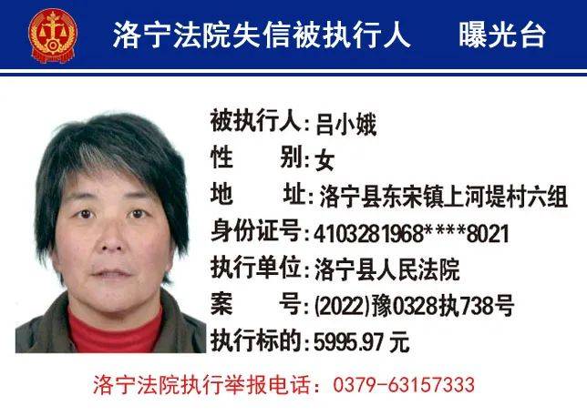 洛宁法院曝光14名失信被执行人员名单!