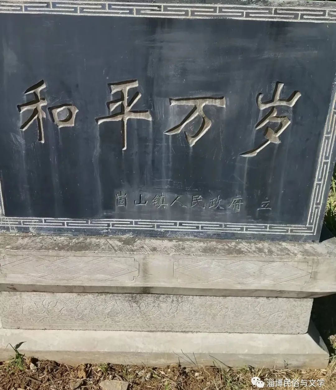 2006年,儿子提议以向中国助学的方式表达对老人的思念。全家拍手赞成,这是个好办法。于是,我带着全家人的心意,专程回中国,向母校(现在的裕禄学校)捐赠了价值十五万元人民币的二十五台电脑及桌椅配套设备,建起了以养父名讳命名的“希顺微机室。”同时,建议崮山镇政府在校园里立了一尊纪念碑,以彰显养父的善举。此碑正面是“和平万岁”四个大字,其含义是人所皆知的。背面的碑文是由时任区政协常务副主席岳永喜撰写,言简意赅,情真意切,凝练精确的概述了养父拯救日本残孤的善行。碑的两旁栽植了两棵樱花树,其用意也是不言而喻的。此碑将是永存的!它将使一代代学生都能知道,北崮山村曾经有这样一位老人,做了这样一件令人钦佩的善事。其功德将永远传颂下去,永远启迪后世而不衰。