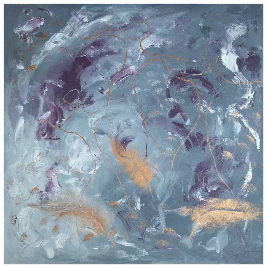 即使如此,在中国当代艺术三十年的潜流中,一直都有艺术家致力于探索作为艺术的诗与画之诗性根源。诗人、画家的施玮就是其实践者之一,无论施玮的文字还是画面,都源于她对于人的自我深处的灵魂的体验。那些在人生旋涡周围颤动的羽毛,无所皈依地飞舞,如同一片片在世界中上下挣扎、左右徘徊的灵魂,不知何处是归程。在短暂的人生中,施玮体会到灵界真实得不可言说;体会到思想或灵魂在挣脱肉体后向着太阳的飞奔,体会到“生命中的喜乐与灵魂中的哀愁”,直到“穿越纷繁的理性分析,穿越缜密的逻辑构架,我看见了沉浮于天地间的灵,在它昏睡的硬壳中,呼号如火焰般燃烧。一场大雨正在天上酝酿,闪电与雷鸣是启示之光,也是审判之剑。”从具象到抽象,施玮的画作呈现出她心灵的体验与思想之轨迹。