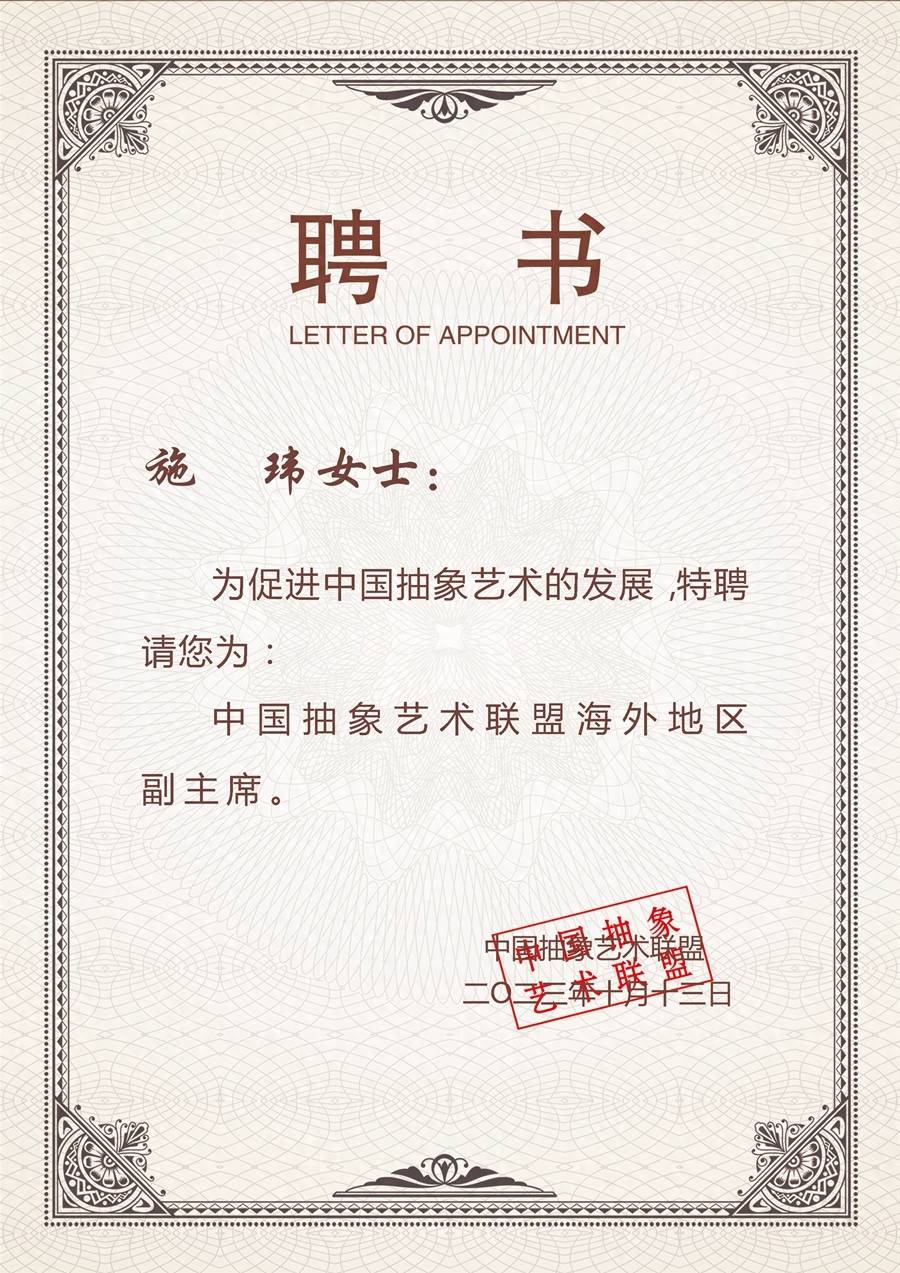 中国抽象艺术联盟海外地区副主席。