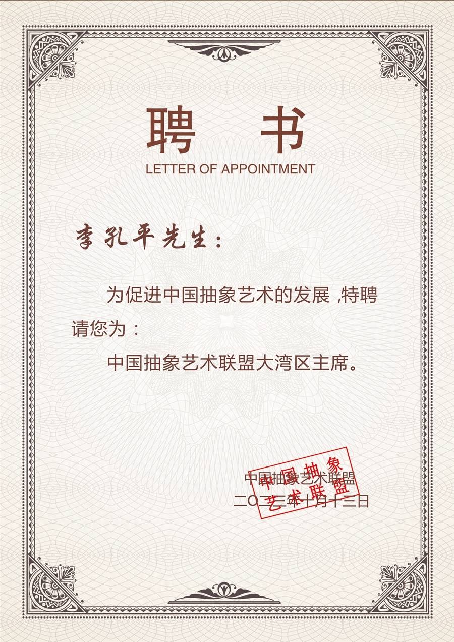 中国抽象艺术联盟大湾区主席。