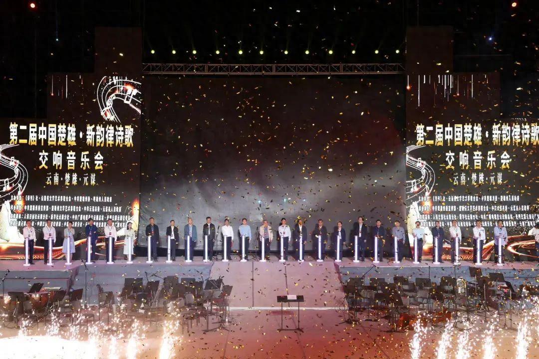 与会主要领导和嘉宾一起按下启动柱,共同见证第二届中国楚雄·新韵律诗歌交响音乐会开始。
