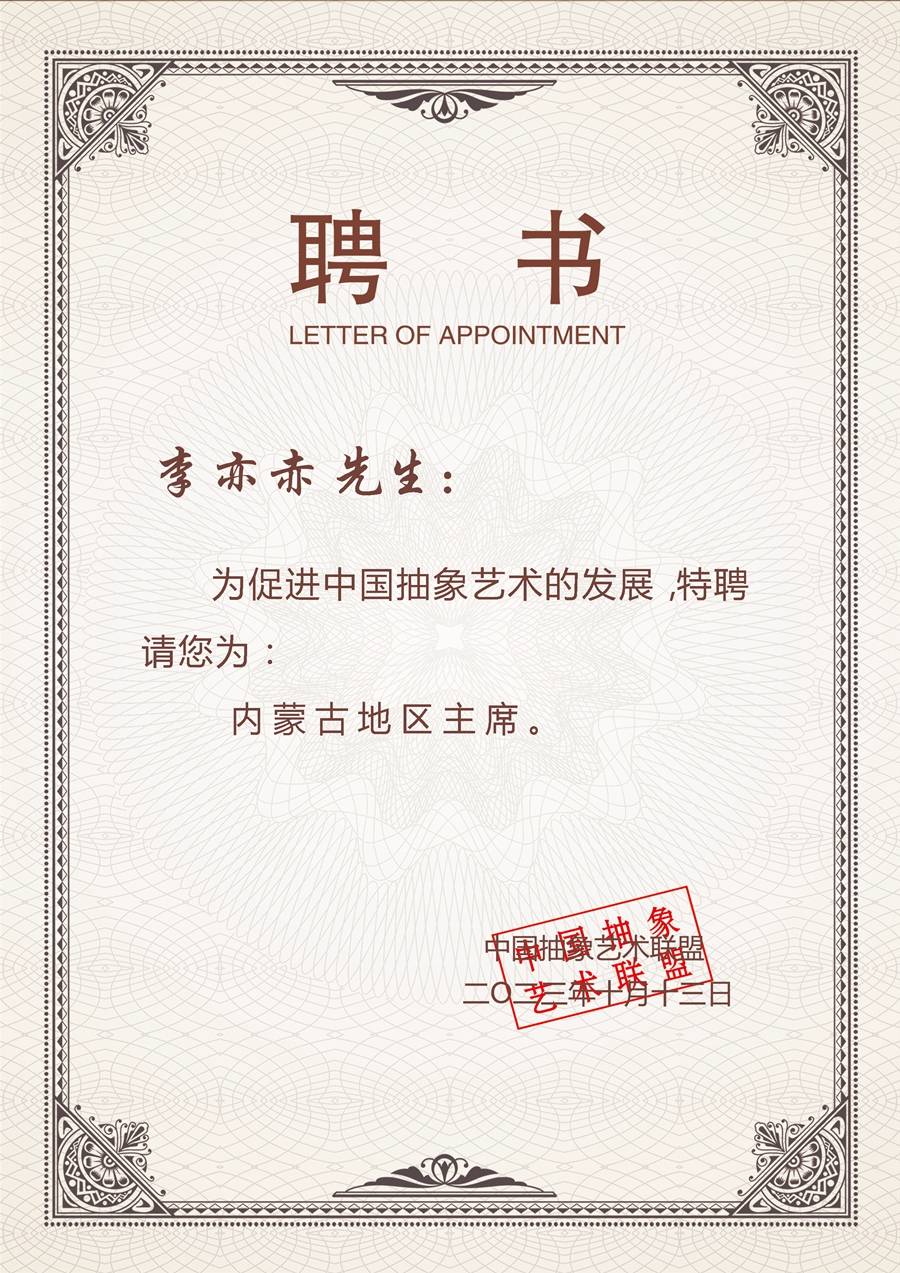 中国抽象艺术联盟内蒙古地区主席。