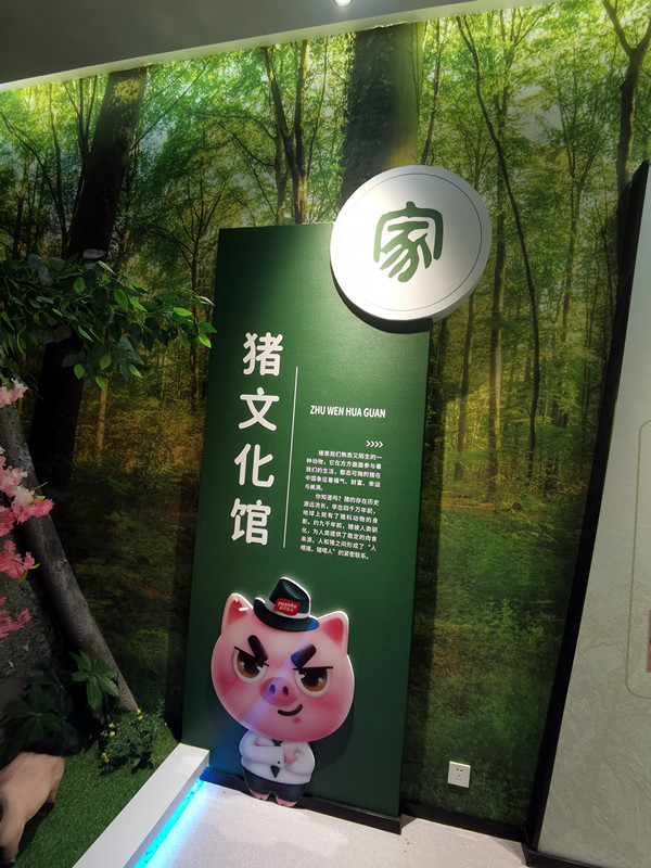 章小福这头名门大猪,现在是一个猪文化馆。前身部分主要对猪的发展史和文化进行系统展示,可以说是一个猪科普教育基地;中间部分是生产加工车间;后半部分是一个冷藏库,通体洋溢着浓浓的猪文化气息。