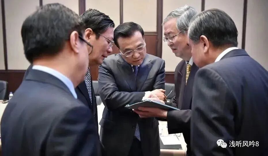 图中可见的人物,时任财政部部长楼继伟、交通运输部部长杨传堂,背手的是中央人民银行行长周小川。