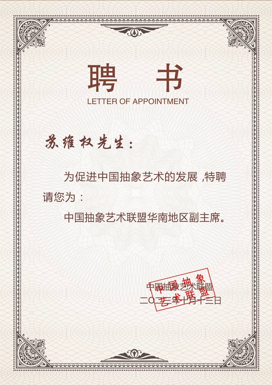 中国抽象艺术联盟华南地区副主席。