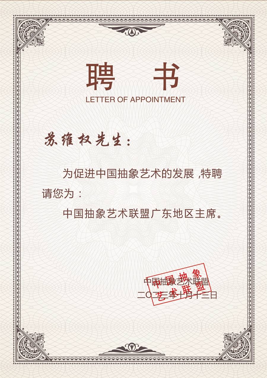中国抽象艺术联盟广东地区主席。