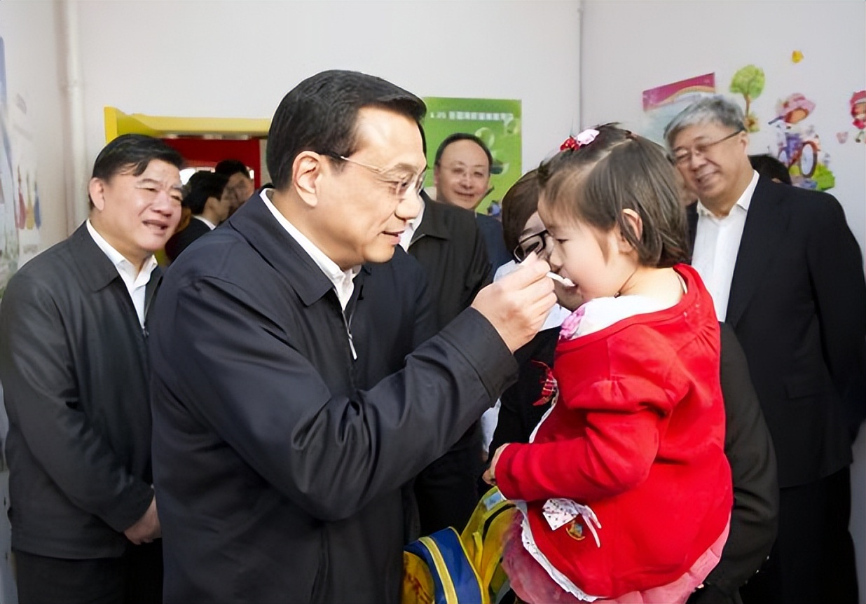 2011年4月25日,李克强参加2011年全国儿童预防接种日活动并考察北京市医改工作。这是李克强在方庄社区卫生服务中心喂孩子服食糖丸。