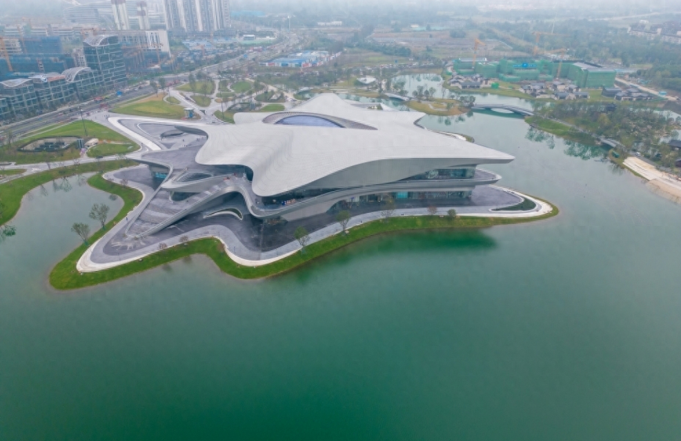 科幻大会的主场馆位于成都市郫都区的青荣湖畔——成都科幻馆。它像一架降落于成都的飞碟,承载着人类对科技的想象力,飞向宇宙,飞向未来。