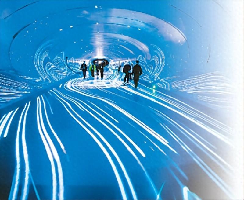 10月18日,在第81届世界科幻大会主场馆——成都科幻馆内,人们走在“时空隧道”内。