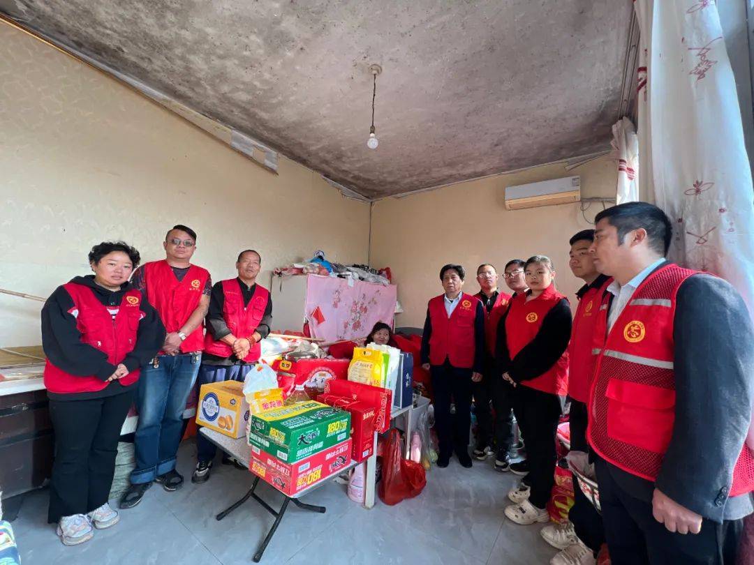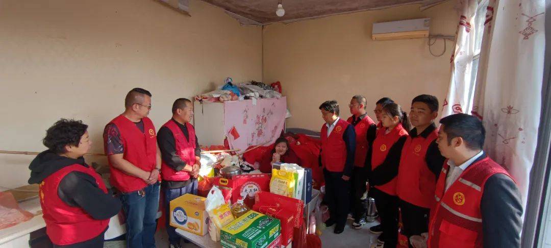 今天,温德军、牛振河、张哲等志愿者们带着米、面、油,牛奶、方便面;郭晴晴、付环伟、村华全、张林、封俊霞、陈小宇、林卿、郝立英等带着生活必需品和一些水果,经过一个多小时的车程,来到了赵密庭家中。