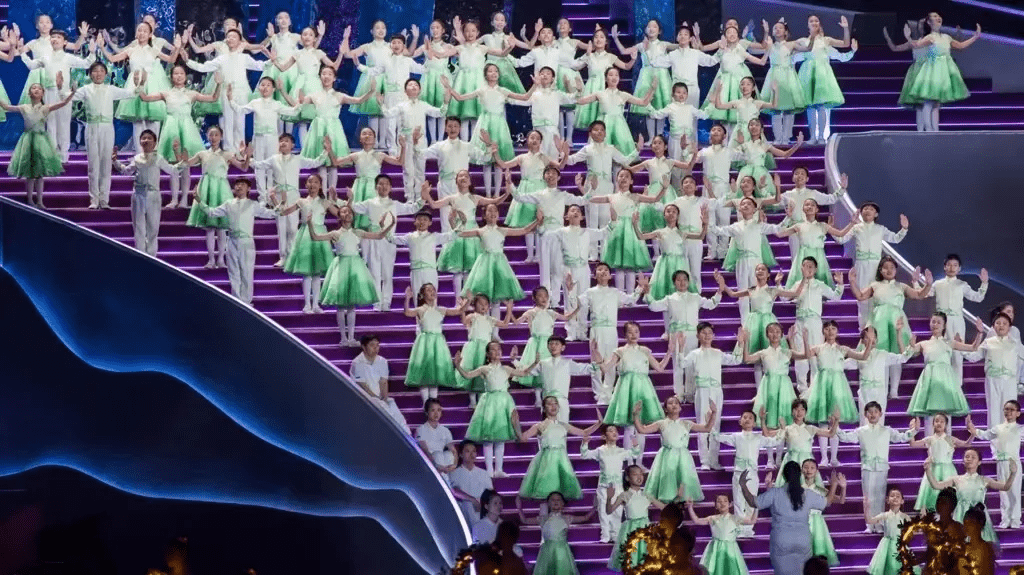 在开幕式《梦闪耀》的篇章中孩子们与听障儿童用手语完成了一场别开生面的合唱表演成为了全场的高潮。