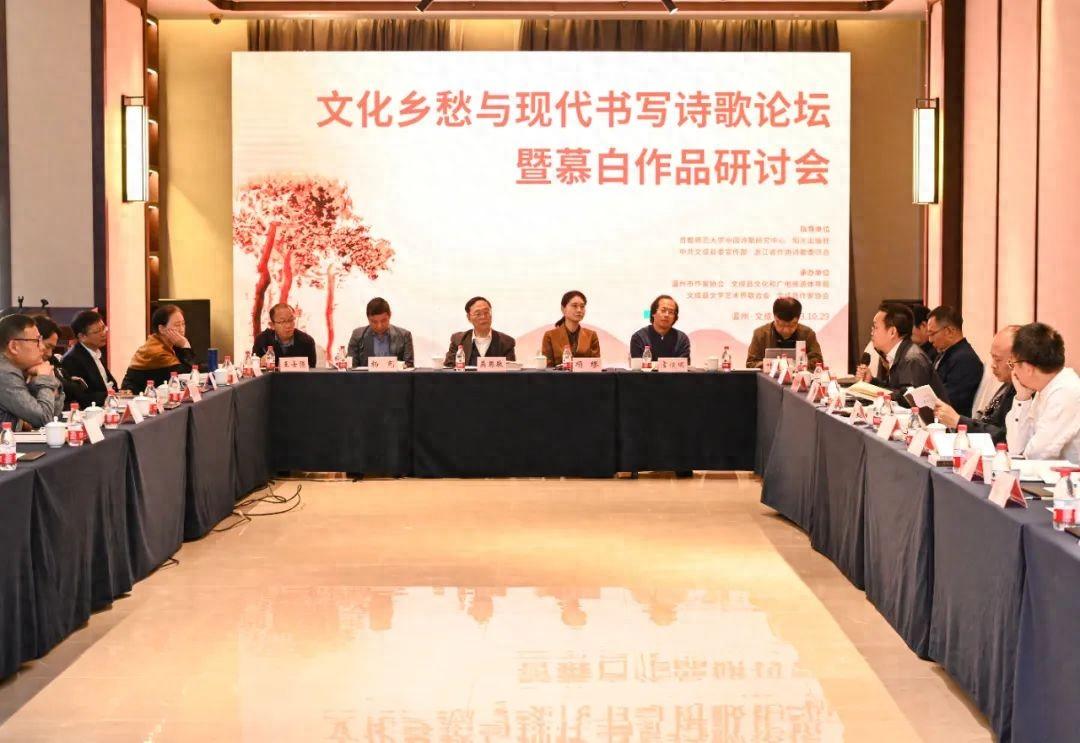 10月29日上午,“文化乡愁与现代书写诗歌论坛暨慕白作品研讨会”在文成举行。首师大教授、著名评论家吴思敬,中国诗歌学会会长杨克,中国作协诗歌创作委员会原主任、《诗刊》原主编叶延滨,《诗刊》社副主编霍俊明,中国诗歌网总编金石开,天津社会科学院研究员、博士王士强,东南大学人文学院教授、博士生导师王珂,县委常委、宣传部部长项缪,以及40多位来自全国各地的知名学者、诗人、评论家参加会议。