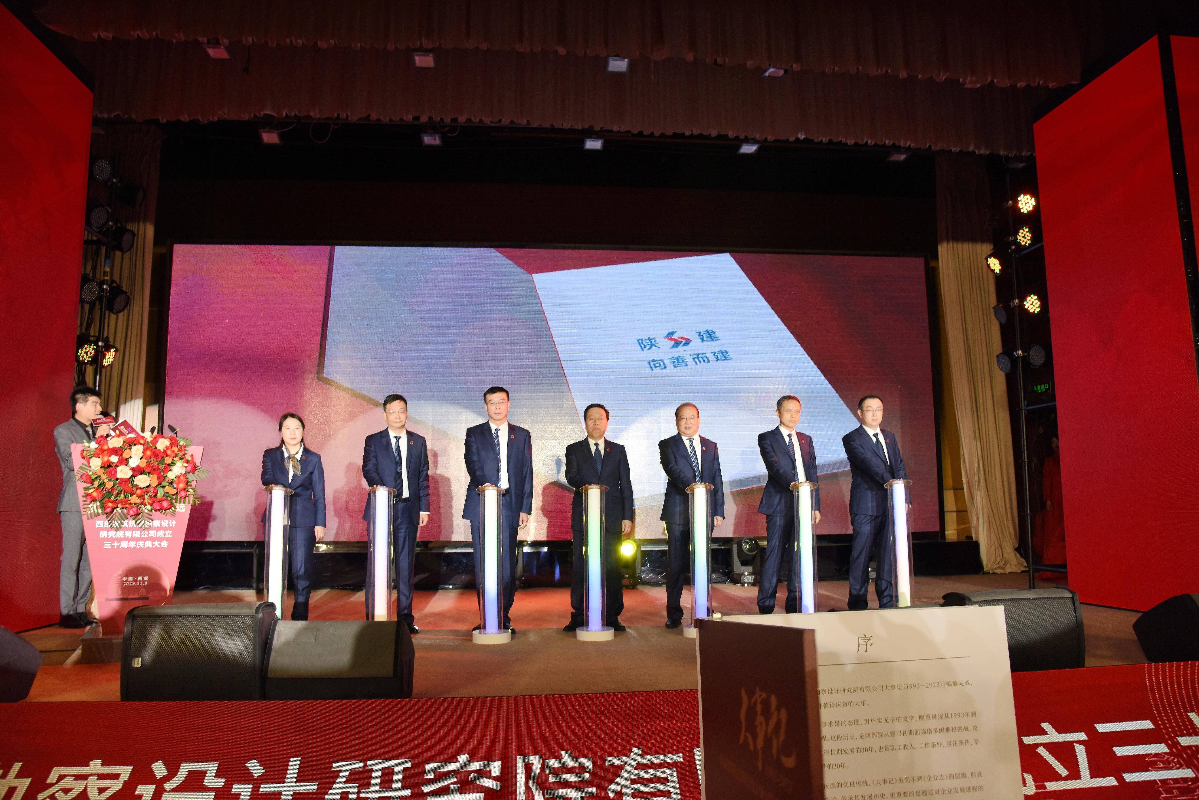 参会嘉宾观看了西部院宣传片,西部院领导班子成员共同发布了《西部建筑抗震勘察设计研究院有限公司大事记》。