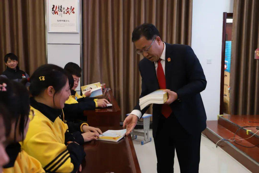 课后,徐朝阳向在座的师生赠送法治教育、青少年学法用法等法治读本,普法宣传册及资料袋等,叮嘱同学们在日常生活中要时刻树立法律意识、学习法律知识,养成良好行为习惯,努力学习、健康成长。