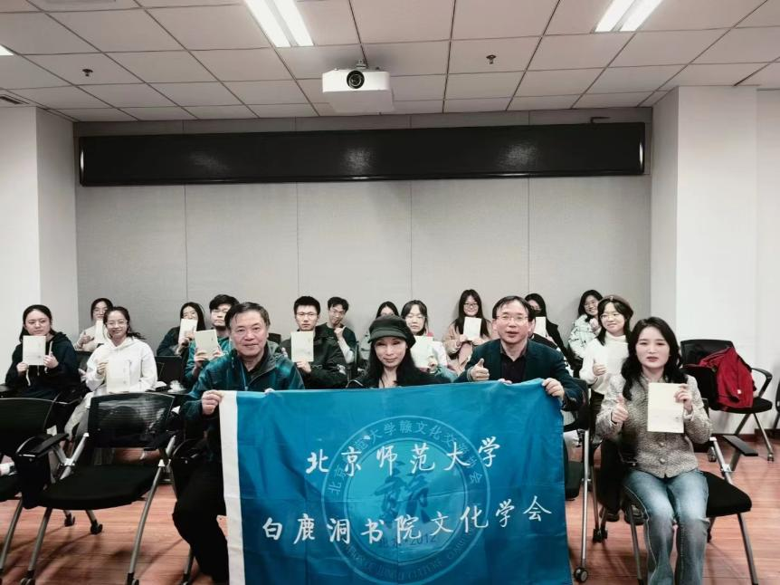 最后,马文秀向与会的文朋书友和读者签名赠书。与谭五昌教授、陆健教授以及北京师范大学白鹿洞书院文化学会会长李旖嫣同学等北师大学子合影留念。