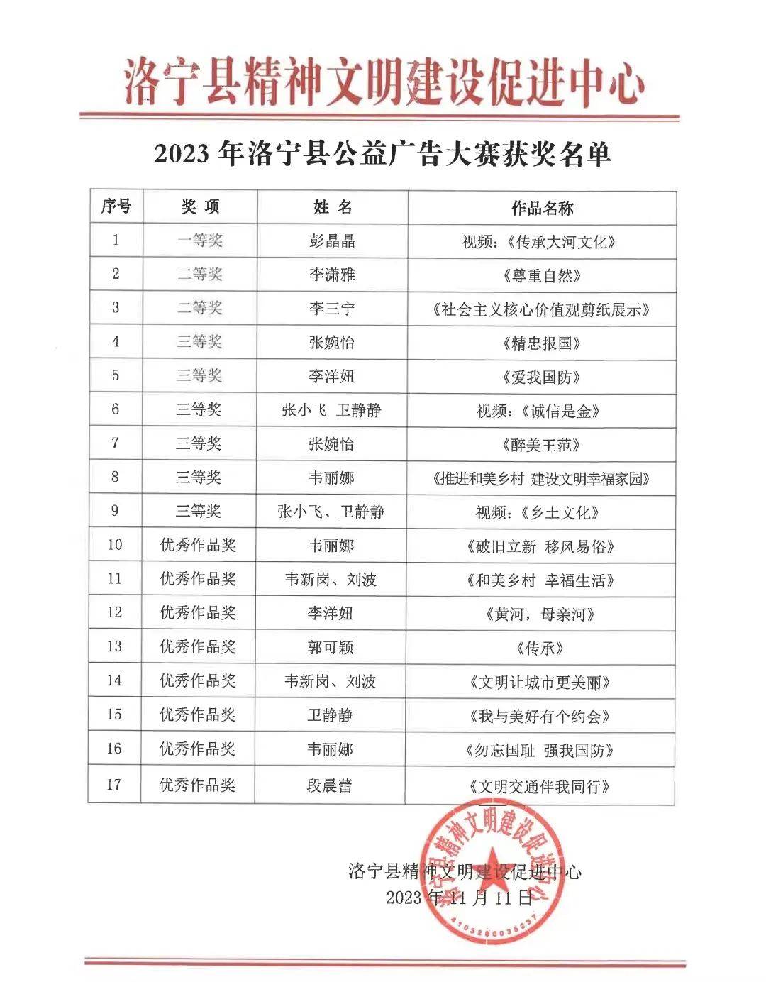 2023年洛宁县首届公益广告大赛获奖名单公示