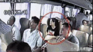 ▲画面里唯一系了安全带的乘客,她受到的伤害远小于其他乘客。