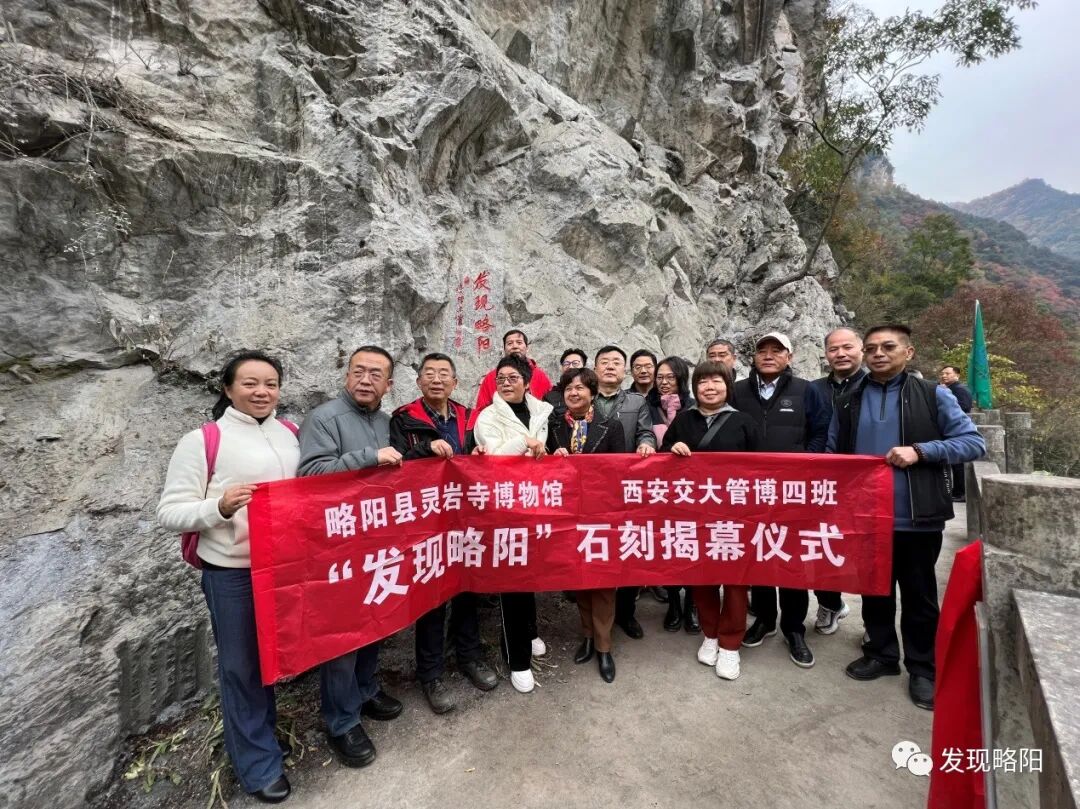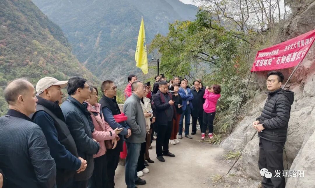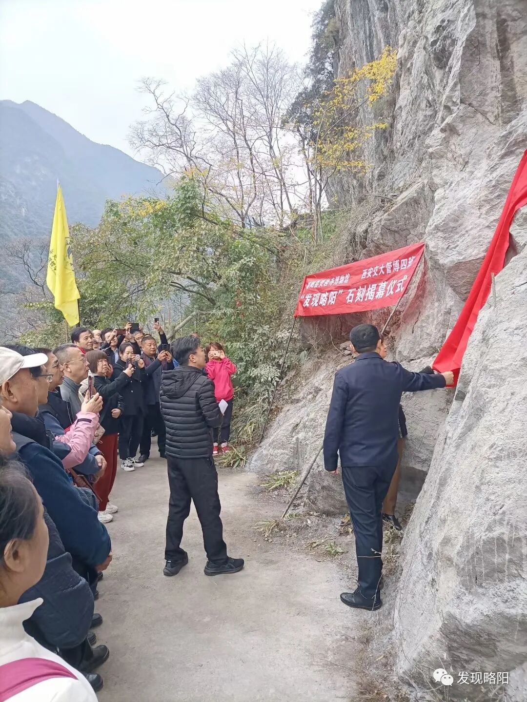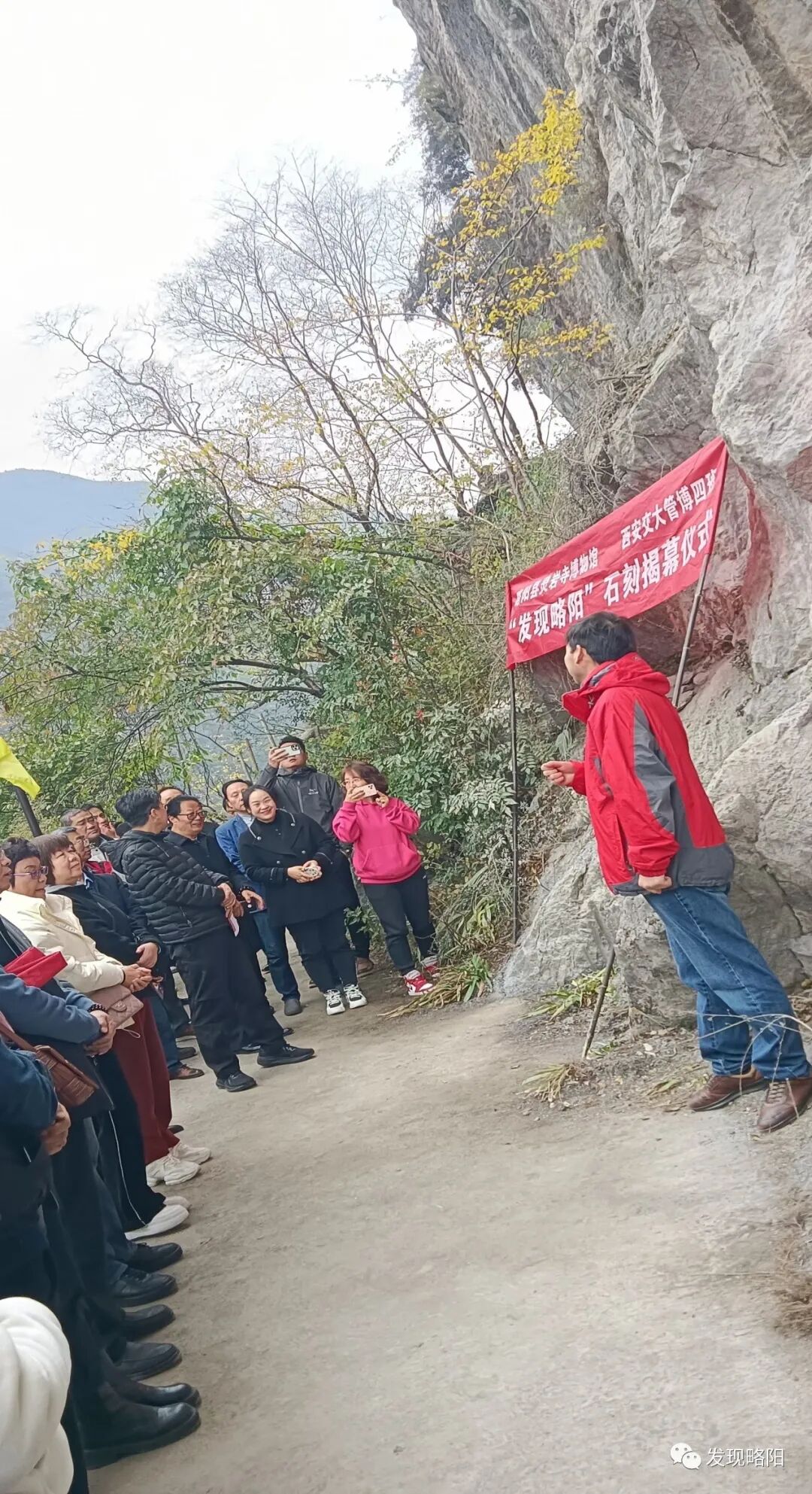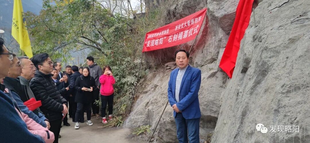 2023年11月12日上午10时,由略阳县灵岩寺博物馆和西安交通大学管理哲学博士四班共同在灵岩寺南天门隆重举办陈忠实先生题书“发现略阳”石刻揭幕仪式。