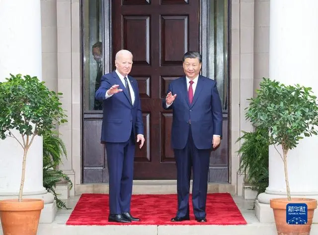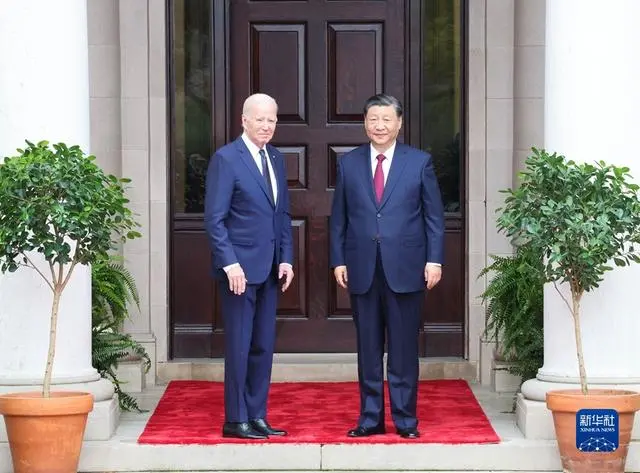 当地时间11月15日,国家主席习近平同美国总统拜登在斐洛里庄园举行中美元首会晤。新华社记者 饶爱民 摄