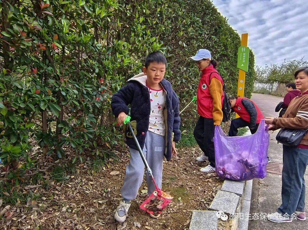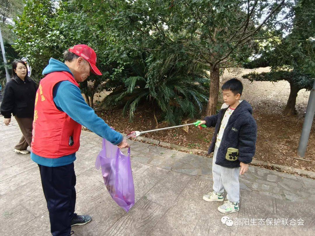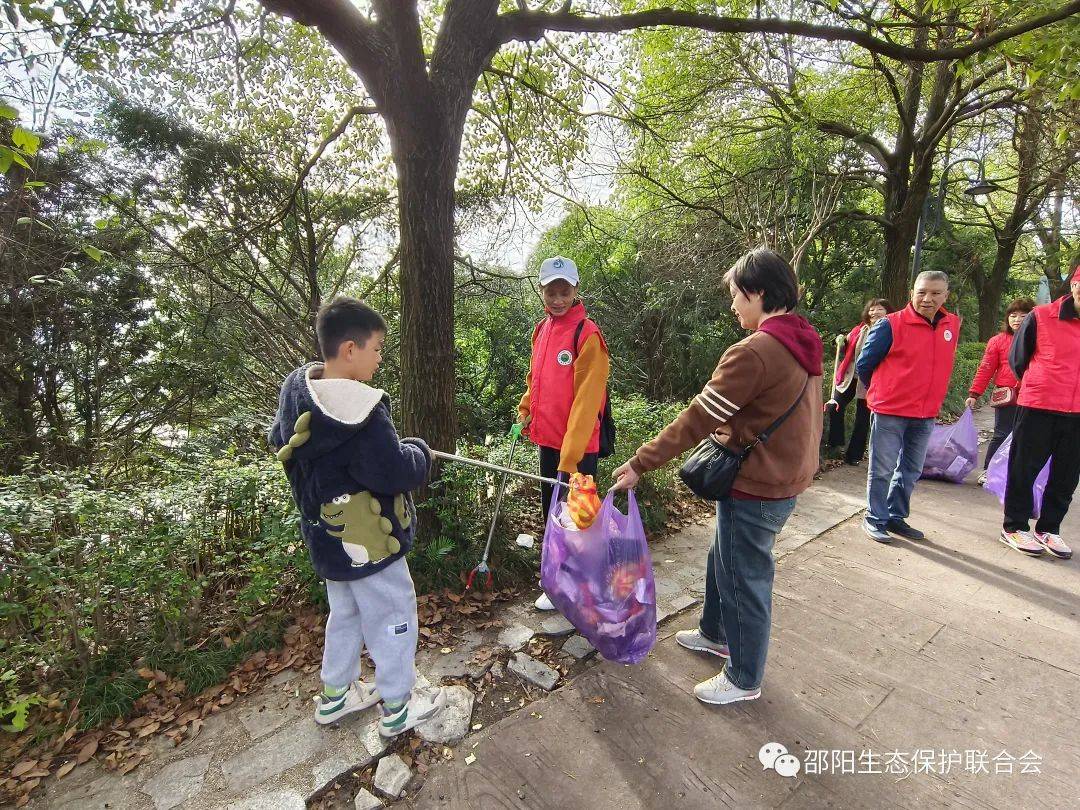 让人感动的是一对母子。就读资江小学三年级的9岁男孩李晨毅,跟着妈妈祝艳芬来公园游玩,看到这么多红马甲干得热火朝天,兴奋地对妈妈说:"我也要当志愿者!"说干就干,母子二人一人提袋,一人握夹,穿行在紫薇丛中,仔细搜寻、捡拾每一片白色垃圾,干得可欢呢。