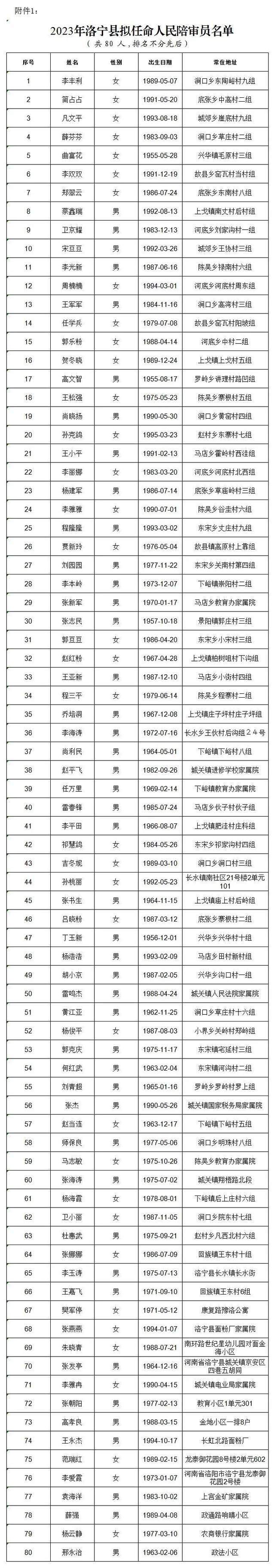 附件1:2023年洛宁县拟任命人民陪审员名单