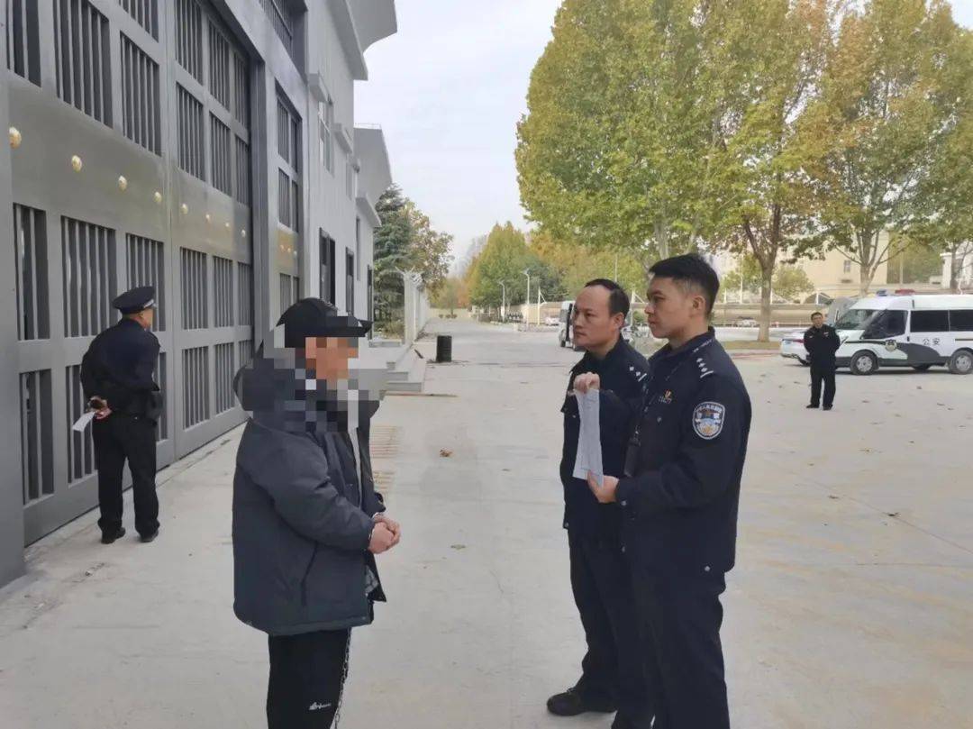 11月22日,洛宁县公安局民警乔杨、金鹏伟赴河南省豫中监狱对一名刚刚刑满释放,走出监狱大门的服刑人员夏某某宣布刑事拘留。