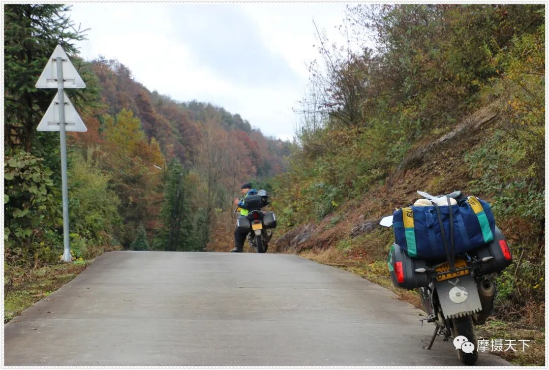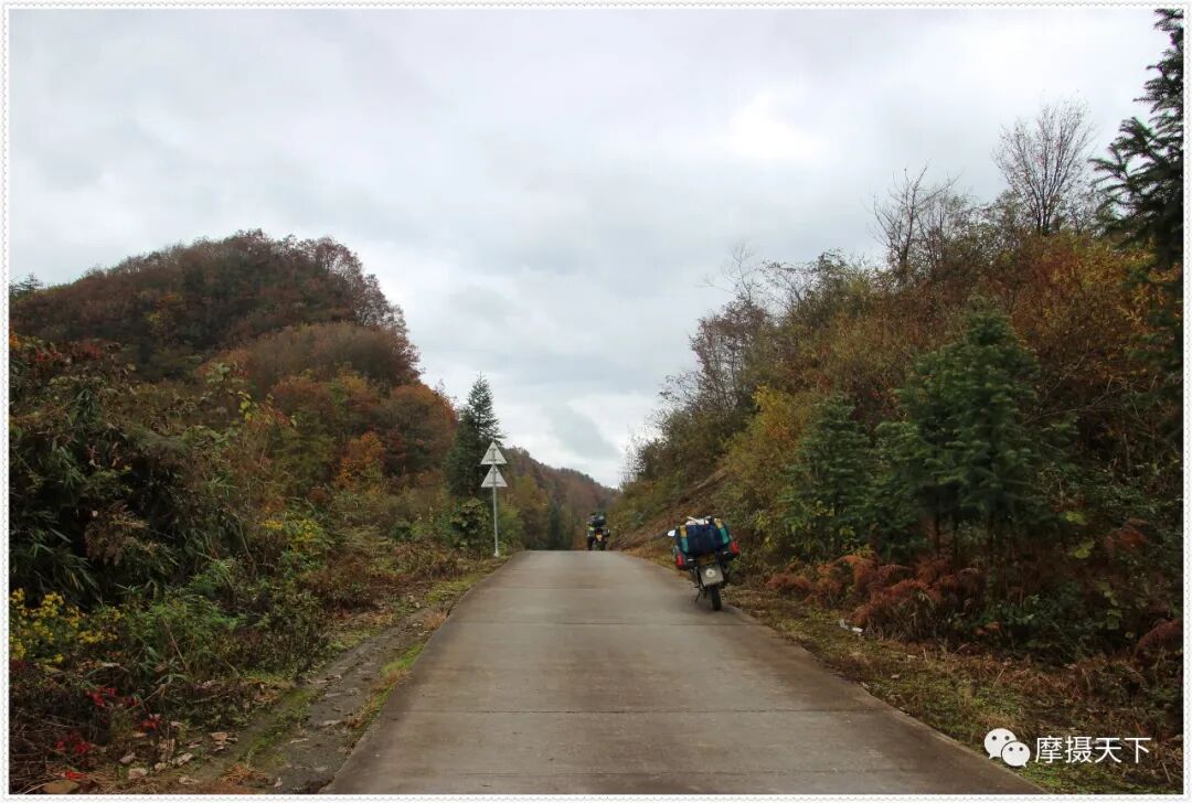 2021年11月初,好久都没有骑车了,疫情在家闲的心慌,此时正是秋高气爽的大好季节,如果不跑一次几天的旅程感觉就辜负了这秋天的美好时光,与老乡相约准备一起跑陕西留坝县,黄柏源生态风景区,还有古城汉中市等地方看看,绕一圈从光雾山,阆中市回德阳,由于疫情的发展让人始料不及,随着疫情的发展而被迫改变线路,第一天住宿于广元市朝天区中子镇(290km),第二天从中子镇出发经陕西汉中市的宁强县-南郑县黎坪国家森林公园-元壩古镇-巴中光雾山,由于我们用的摩托车导航,所以一路都是翻山越岭走的小路,不过一路的风景很是不错,原计划到达黎坪去游一下国家公园,无奈同伴不愿意,只好作罢,同伴说喜欢路上的风景,我们就继续向下一个目的地光雾山出发,其实黎坪与光雾山也不远,翻一座大山就到了,如果走大路也才100公里左右,第二天傍晚到达川陕交界的关口天已经黑下来了,当晚就住宿在巴中市南江县光雾山景区旁的镇子上。