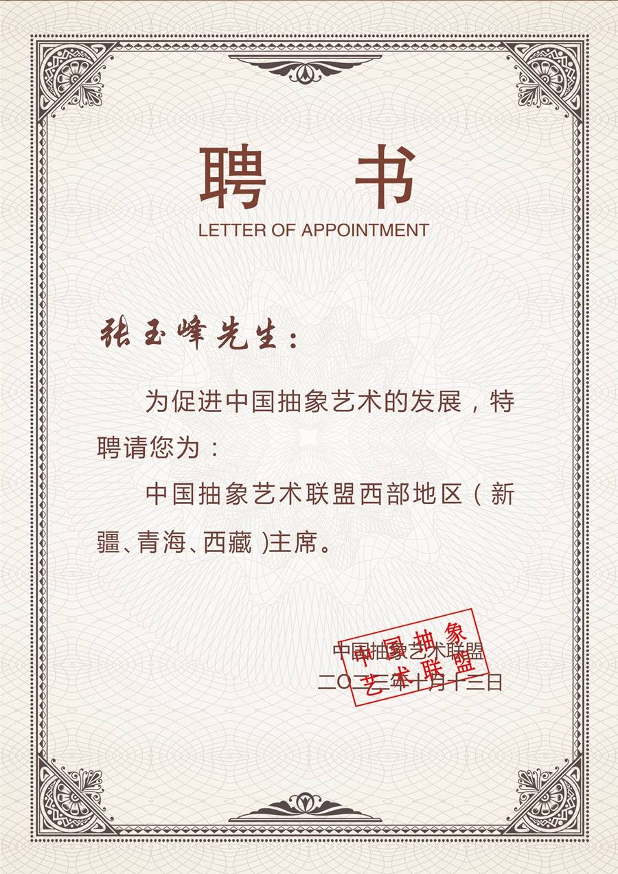 张玉峰获聘中国抽象艺术联盟西部地区主席 新疆地区副主席