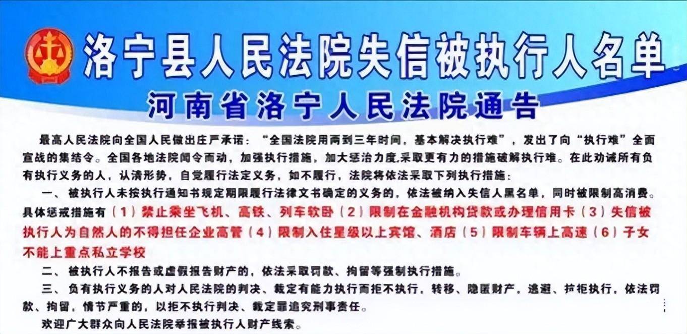 本期是洛宁法院失信被执行人曝光台。欢迎社会各界转发扩散,为构建诚信洛宁贡献自己的力量。